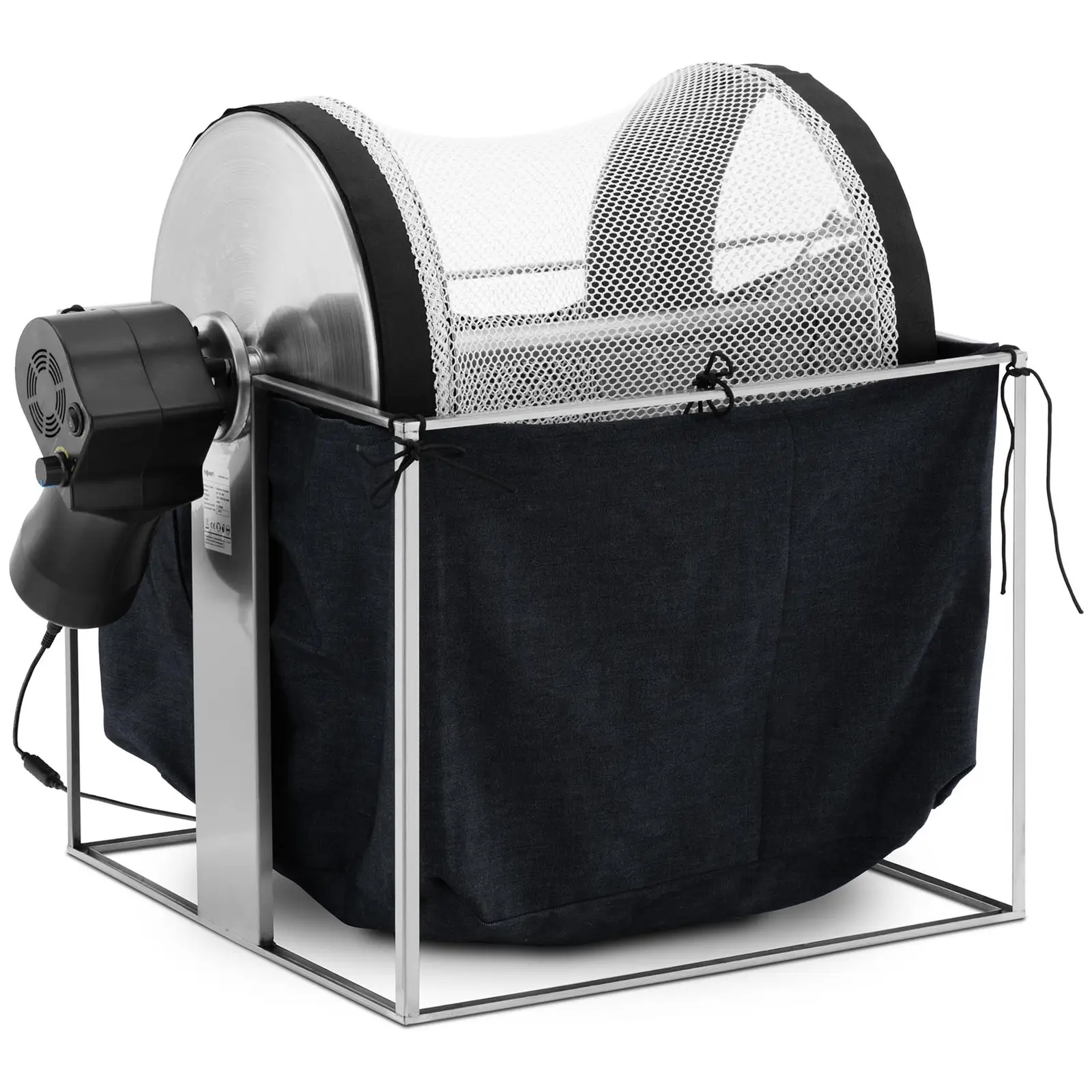L'enveloppe du tambour est constituée d'un filet qui se charge de la coupe à votre place. Il vous suffit de faire tourner le tambour à l'aide d'une manivelle. Grâce à la conception ouverte du filet, vous pouvez voir à tout moment l'avancement de votre travail. Taillez les bourgeons un peu plus rapidement avec le moteur électrique que vous reliez au tambour. Entraîné électriquement, il peut atteindre une vitesse de rotation allant jusqu'à 52 tr/min. Cette méthode de taille ne nécessite pas de couteaux et est particulièrement douce pour vos bourgeons. Vous pouvez régler l'intensité de la coupe uniquement par la vitesse de rotation. Vous traitez ainsi jusqu'à 30 kg de matière végétale en une heure.