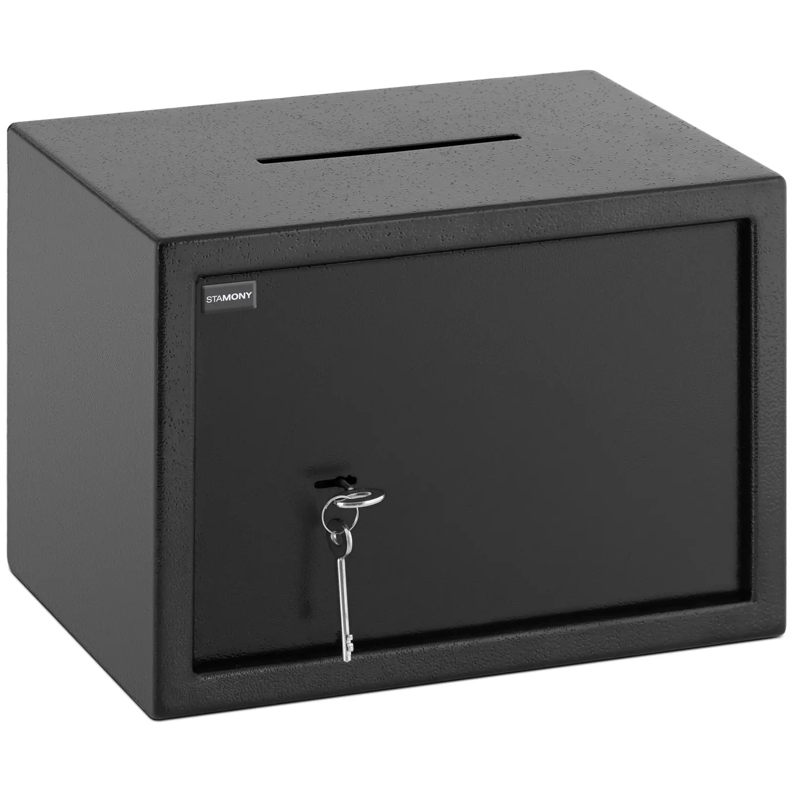 Les objets de valeurs, documents, clés et supports de données ne devraient pas être laissés à la portée de tous, mais plutôt stockés à un endroit sûr comme le coffre-fort encastré ST-ES-250C de Stamony. Ce coffre avec fente compact, robuste et sécuritaire constitue la solution idéale pour protéger vos recettes de manière simple et rapide au fil de la journée ou des différents quarts de travail.